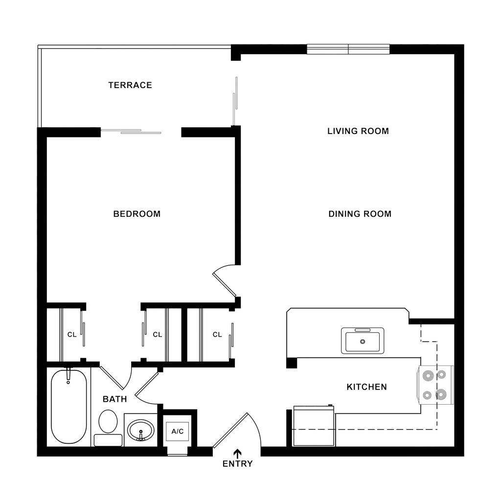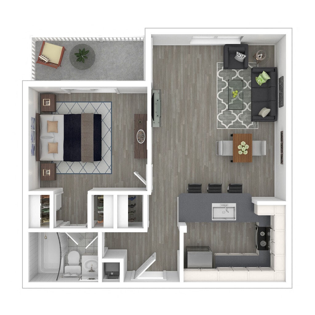 1 Dormitorio, 1 Baño, 641 pies²Disponible AhoraGalería del Modelo