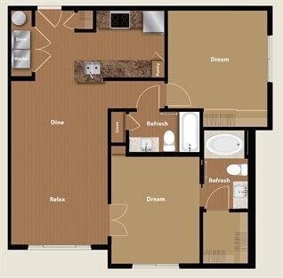 2 Bedroom/2 Bath - Plano 1 2 Bedroom/2 Bath
