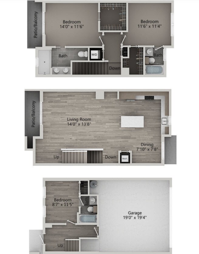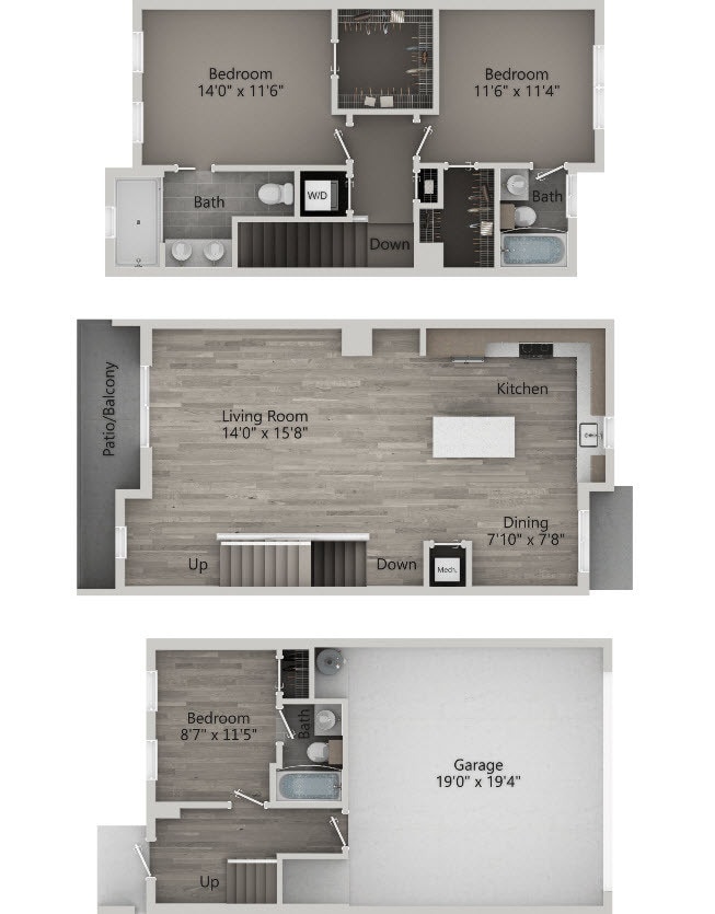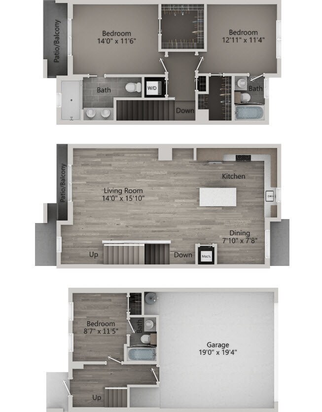 3 Dormitorios, 3 Baños, 1710 pies²El más grandeEsta opción tiene las unidades más grandes para este modeloGalería del Modelo