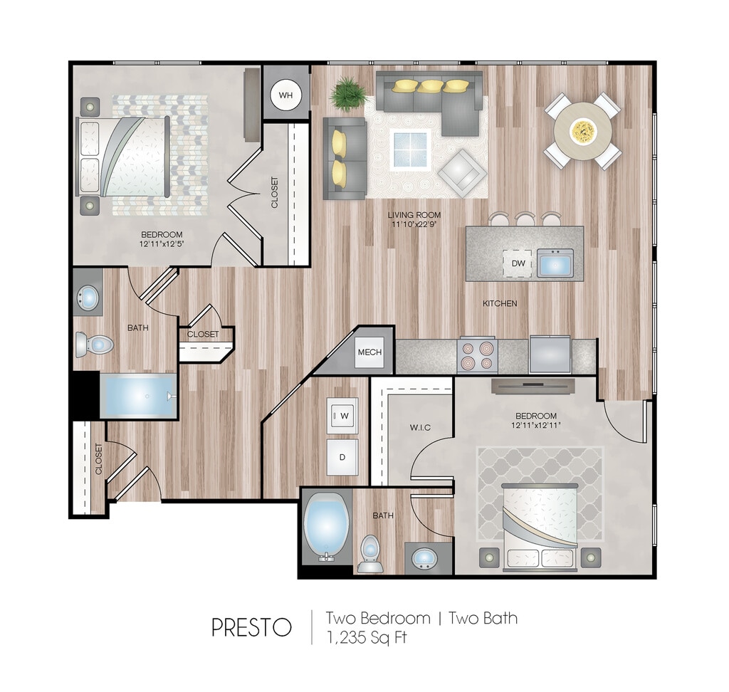 1 Dormitorio, 1 Baño, 760-761 pies²Disponible AhoraGalería del Modelo