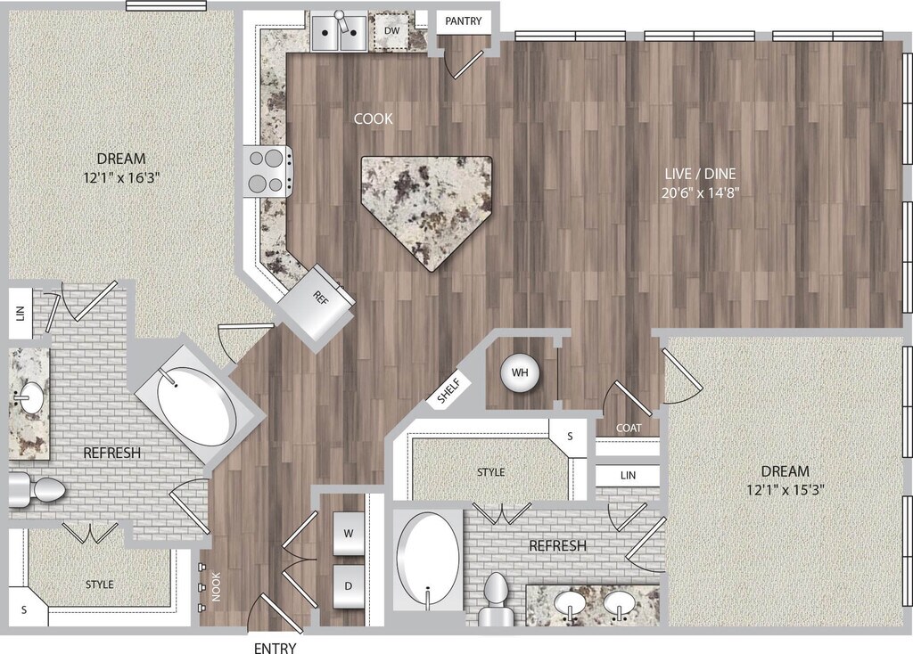 Estudio, 1 Baño, 556 pies²Disponible AhoraGalería del Modelo