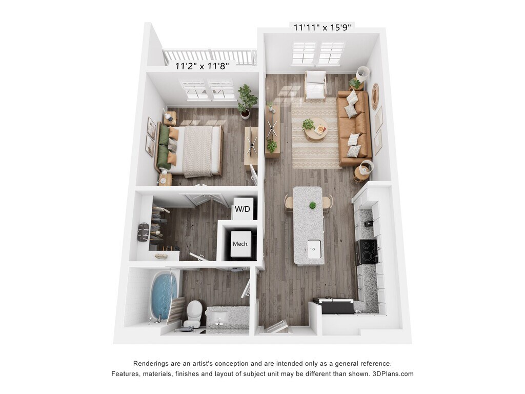 1 Dormitorio, 1 Baño, 708 pies²Galería del Modelo