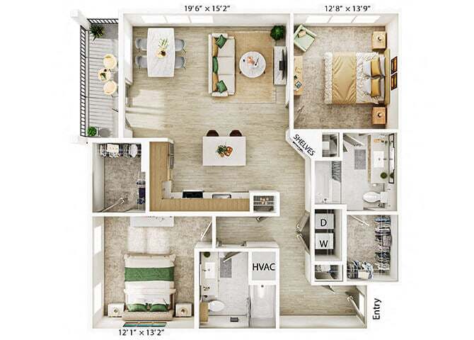 Modelo de apartamento: S2Desde $1,130Estudio, 1 Baño, 538 sq ftDisponible Ahora![]()