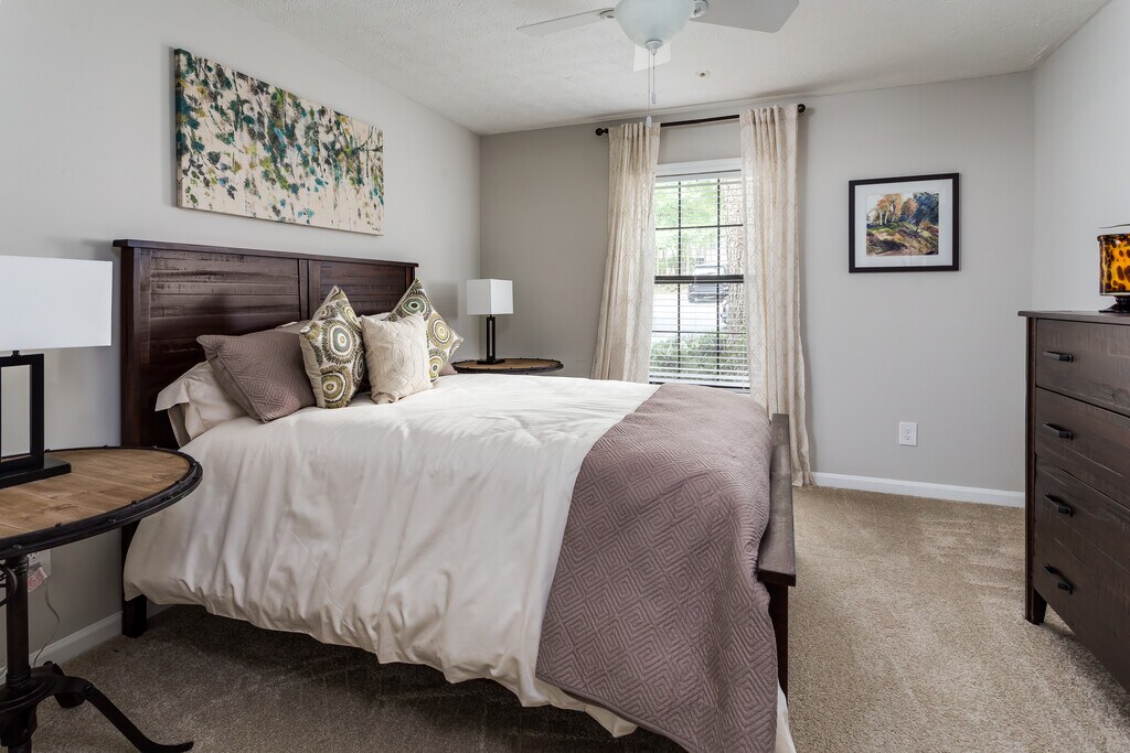 En Calibre Lake Apartments, puedes relajarte en tu solárium de cuatro estaciones y luego salir a tu terraza al atardecer al finalizar un día perfecto. O bien, puedes elegir seleccionar un libro favorito de tus estanterías empotradas y relájate frente a la chimenea a leña. Calibre Lake Apartments es un excelente lugar para descansar y relajarte, ¡y también es un entorno perfecto para la diversión con amigos! Comienza el día con un chapuzón en la piscina refrescante con vista al lago, donde puedes quedarte para refrigerios de cortesía en la cabaña junto a la piscina... y luego disfrutar de una parrillada en el área de pícnic con parrilla para barbacoa. No hay prisa ya que puedes esperar hasta el fresco de la noche para jugar en las canchas de tenis iluminadas. Más tarde, encontrarás un tranquilo swing para conversar con amigos por la noche… o reserva la casa club para agregar aún más flexibilidad a tus planes de entretenimiento.
