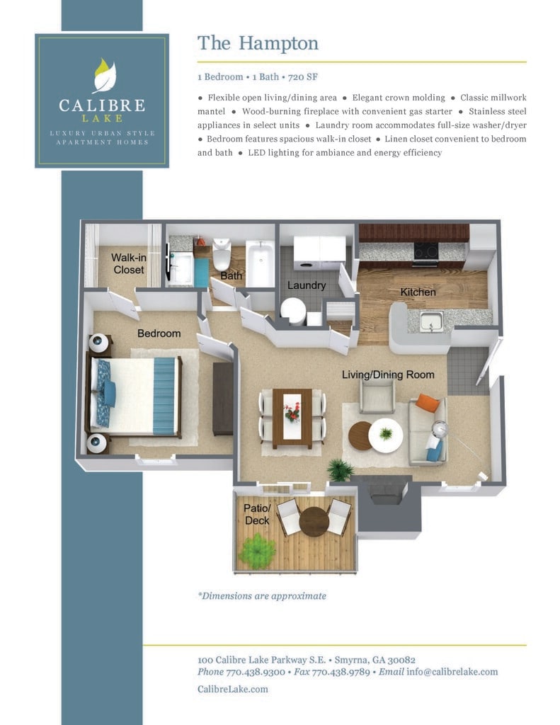Modelo de apartamento: Hampton DeluxeDesde $1,3251 Dormitorio, 1 Baño, 720 sq ftDisponible AhoraPlanosFotos![]()
