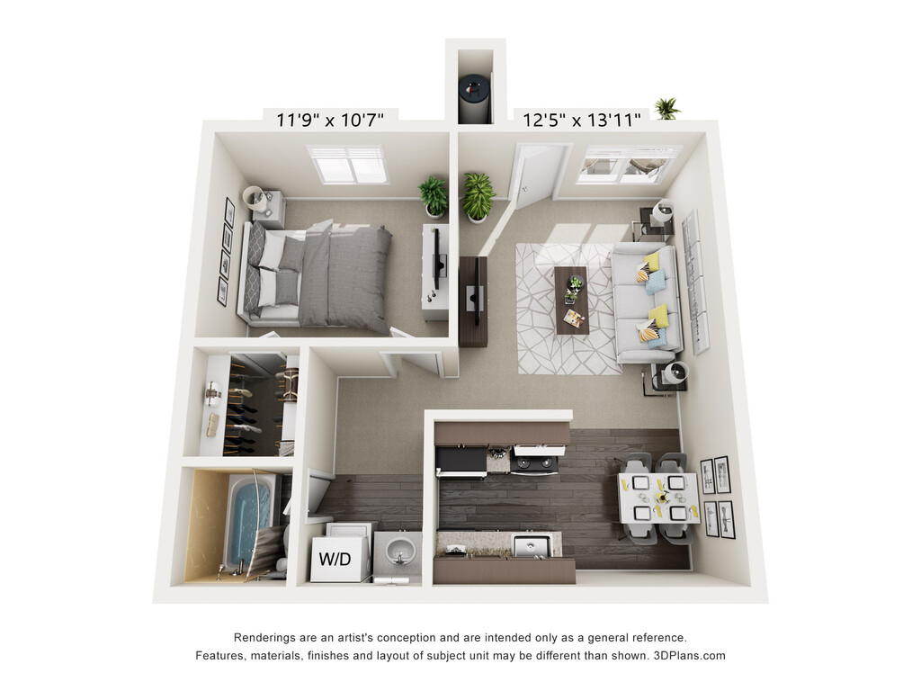 1 Dormitorio, 1 Baño, 564 pies²Disponible AhoraGalería del Modelo