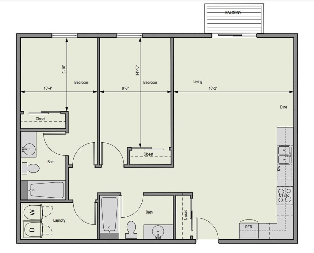 2x1 - Plano 1 Unidad de apartamento: 129Modelo de apartamento: 2x12 Dormitorios, 1 Baño, 1020 sq ftDisponible January 15, 2026Plano: 2x2