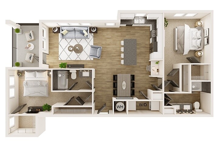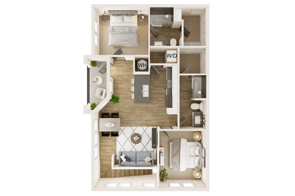Modelo de apartamento: A2Desde $1,2951 Dormitorio, 1.5 Baños, 715 sq ftDisponible Ahora![]()