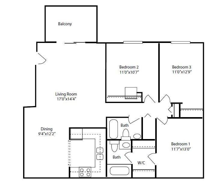 Modelo de apartamento: The LynnfieldDesde $1,0451 Dormitorio, 1 Baño, 750 sq ftDisponible Ahora![]()