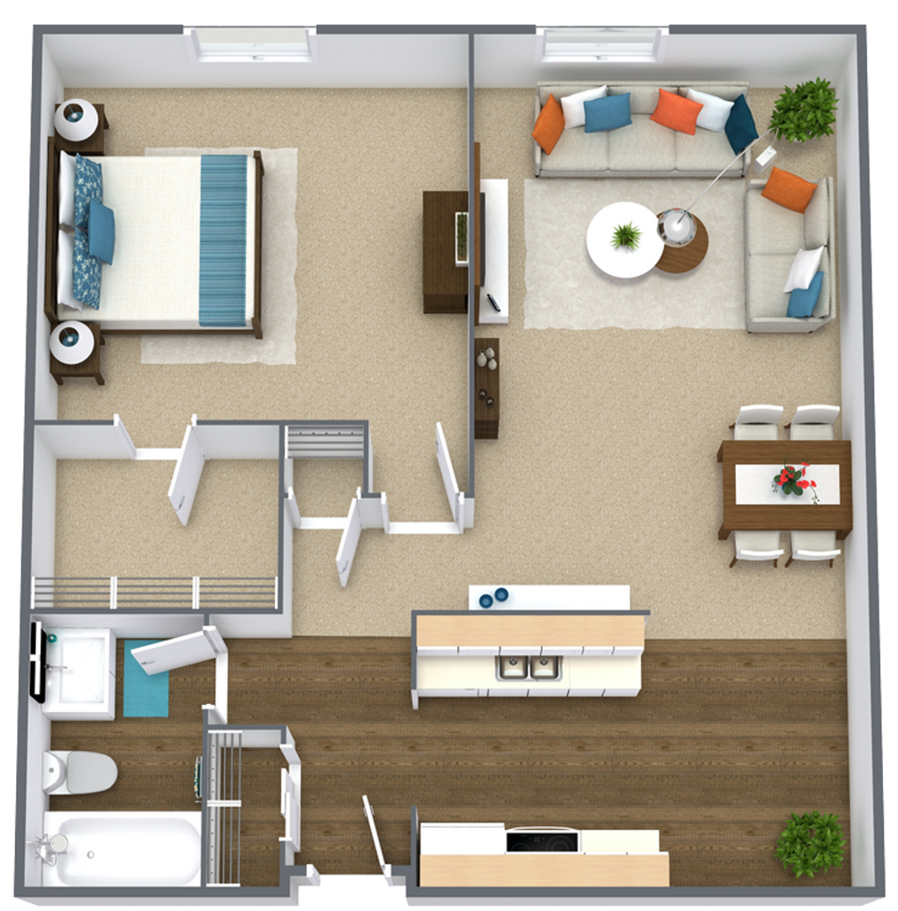 1 Dormitorio, 1 Baño, 723 pies²Disponible AhoraGalería del Modelo