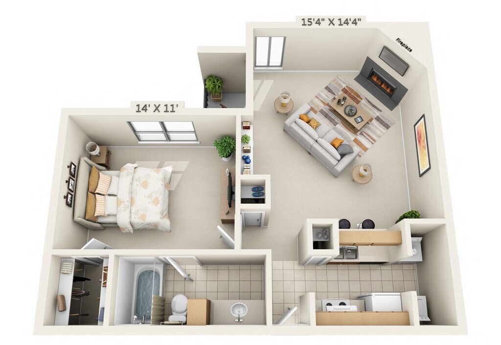 1 Bedroom, 1 Bath - Plano 1 ![]()