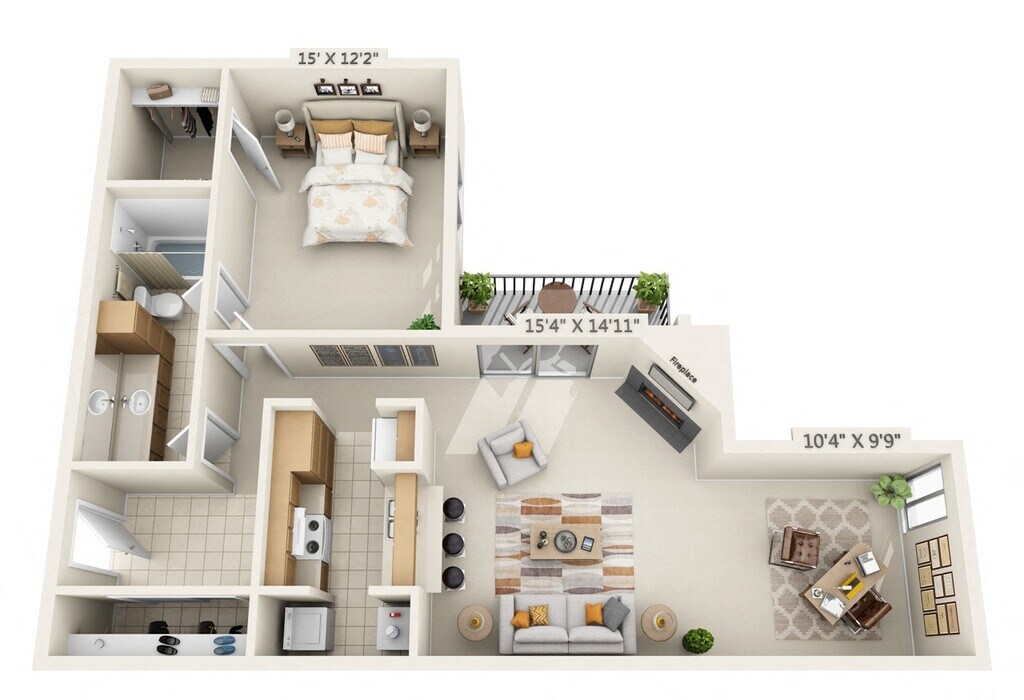 1 Bedroom, 1 Bath - Plano 9 ![]()