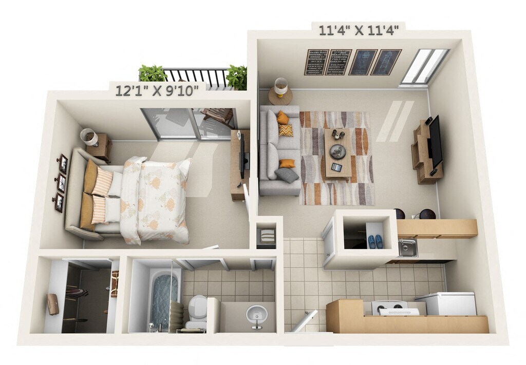 1 Bedroom, 1 Bath - Plano 7 ![]()