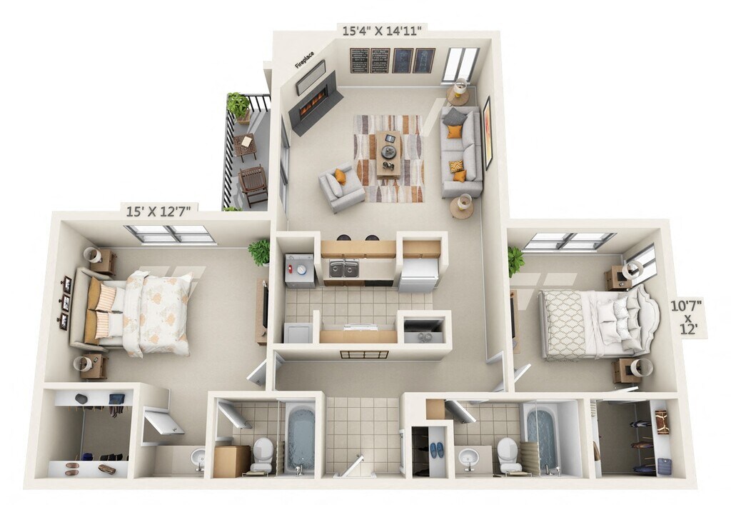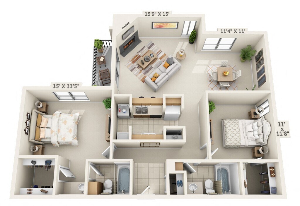 1 Bedroom, 1 Bath - Plano 2 ![]()