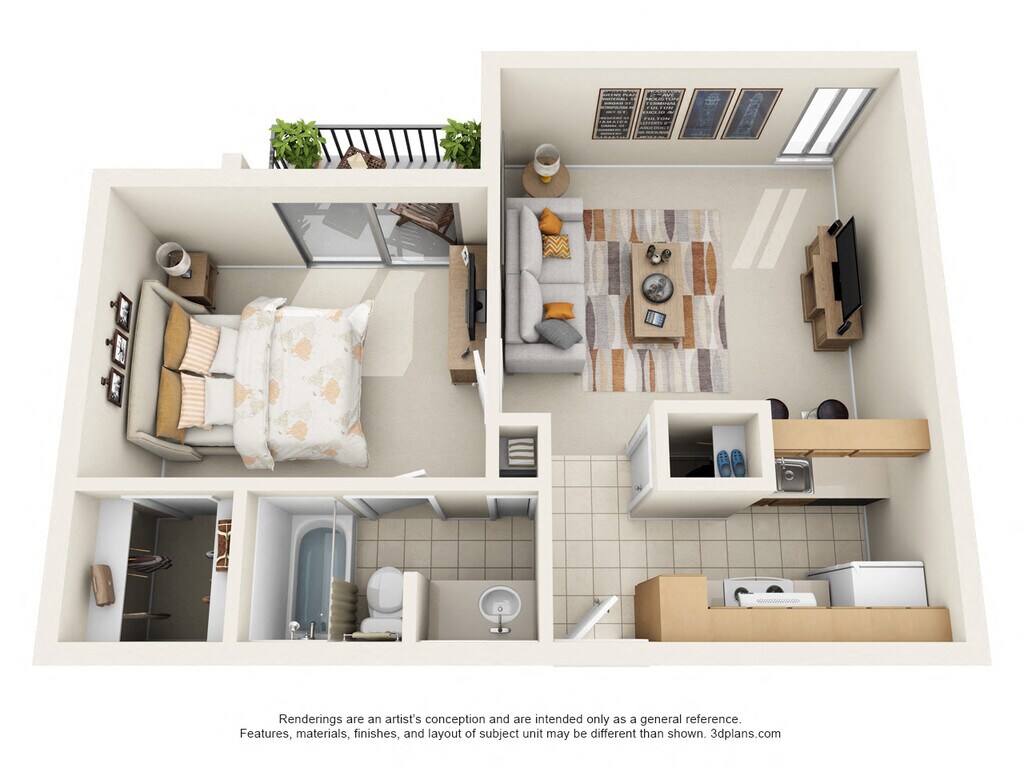 1 Bedroom, 1 Bath - Plano 3 ![]()