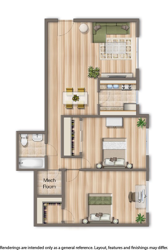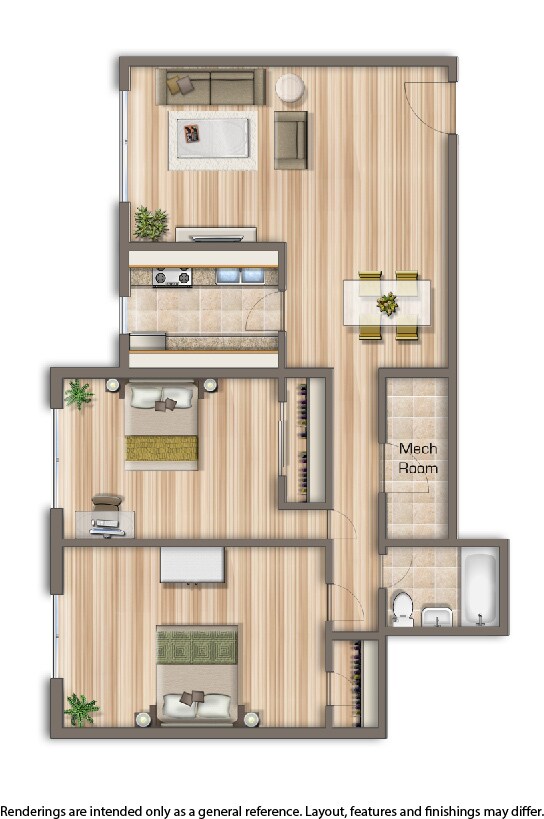 2 Dormitorios, 1 Baño, 975 pies²Galería del Modelo