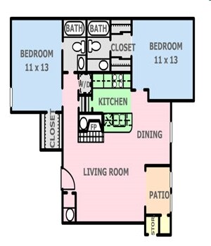 Modelo de apartamento: Two Bed / Two Bath2 Dormitorios, 2 Baños, 950 sq ftNo Disponible![]()