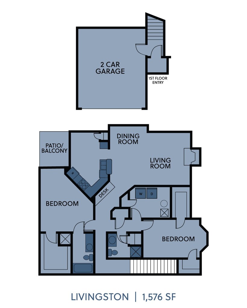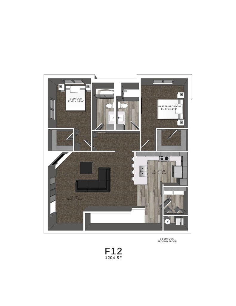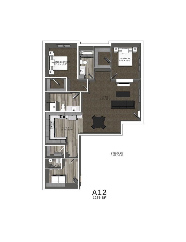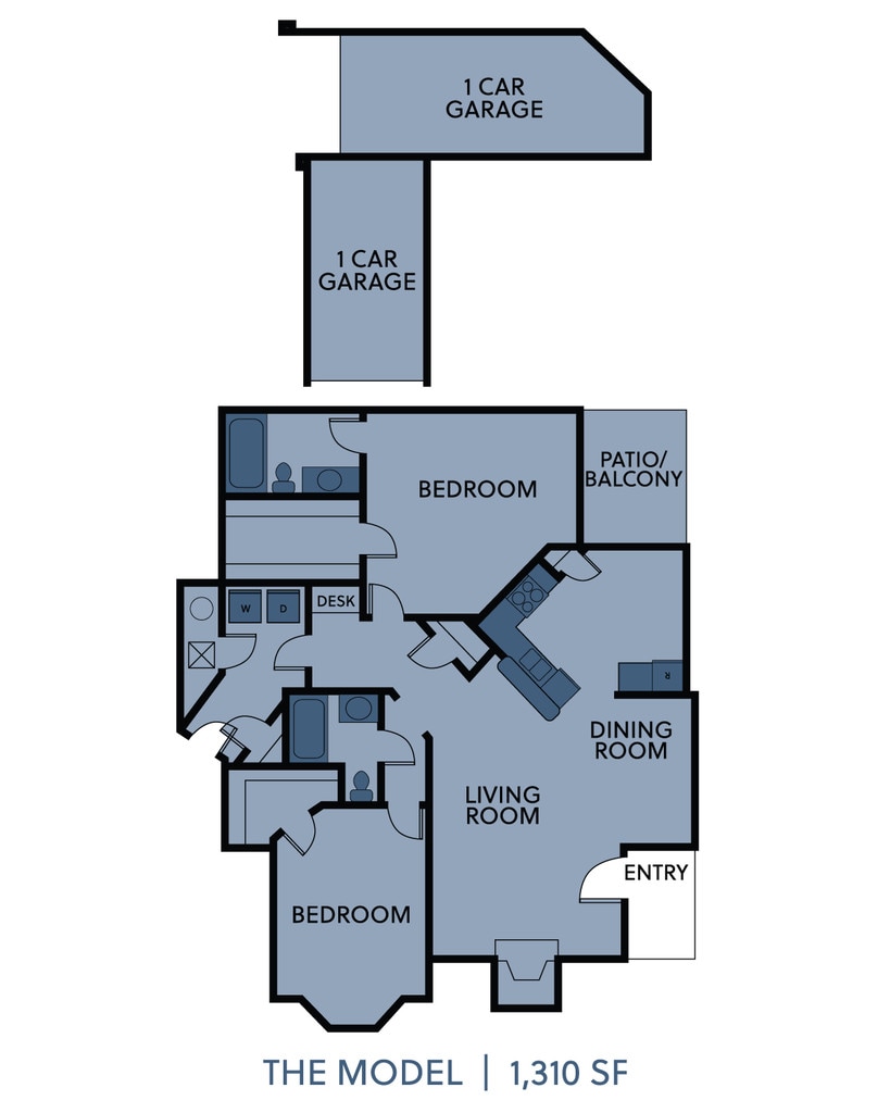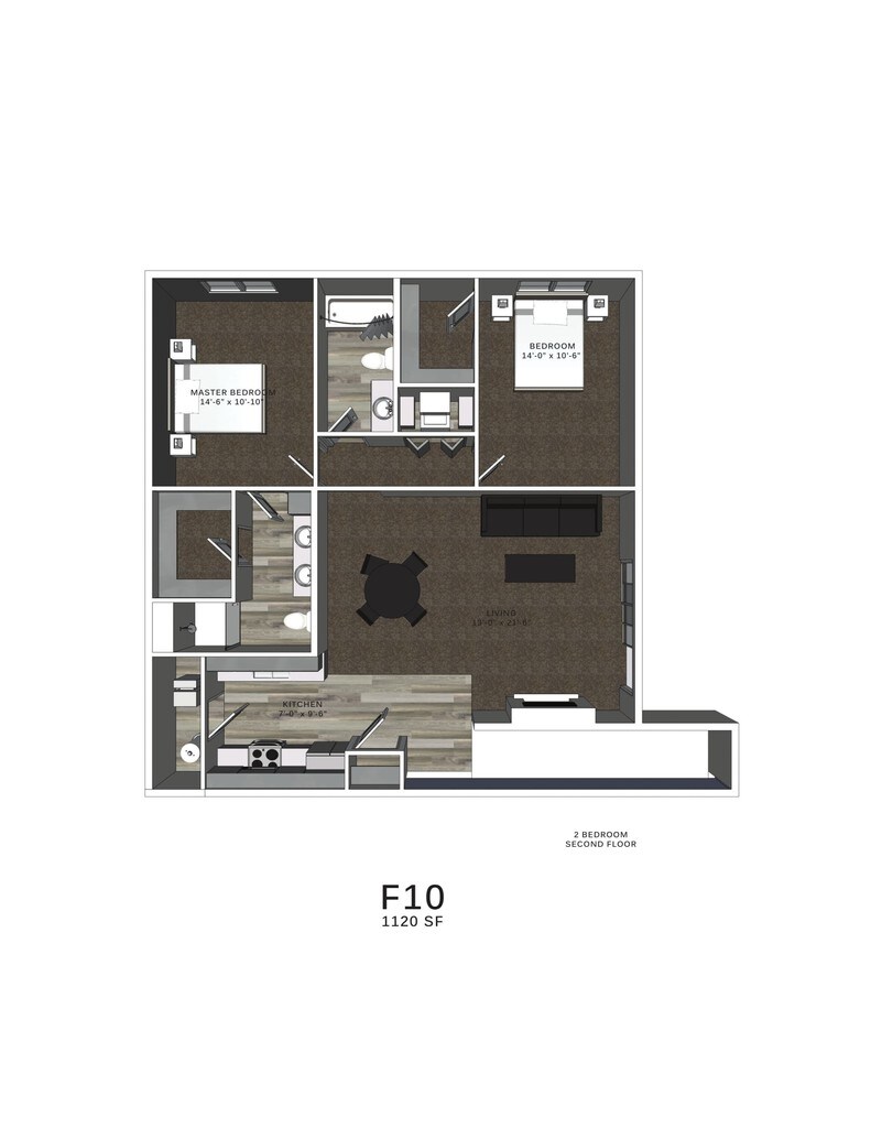 1 Dormitorio, 1 Baño, 774 pies²Galería del Modelo