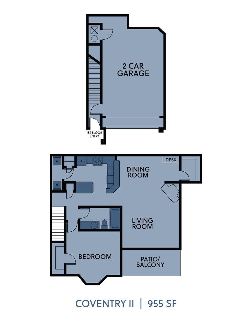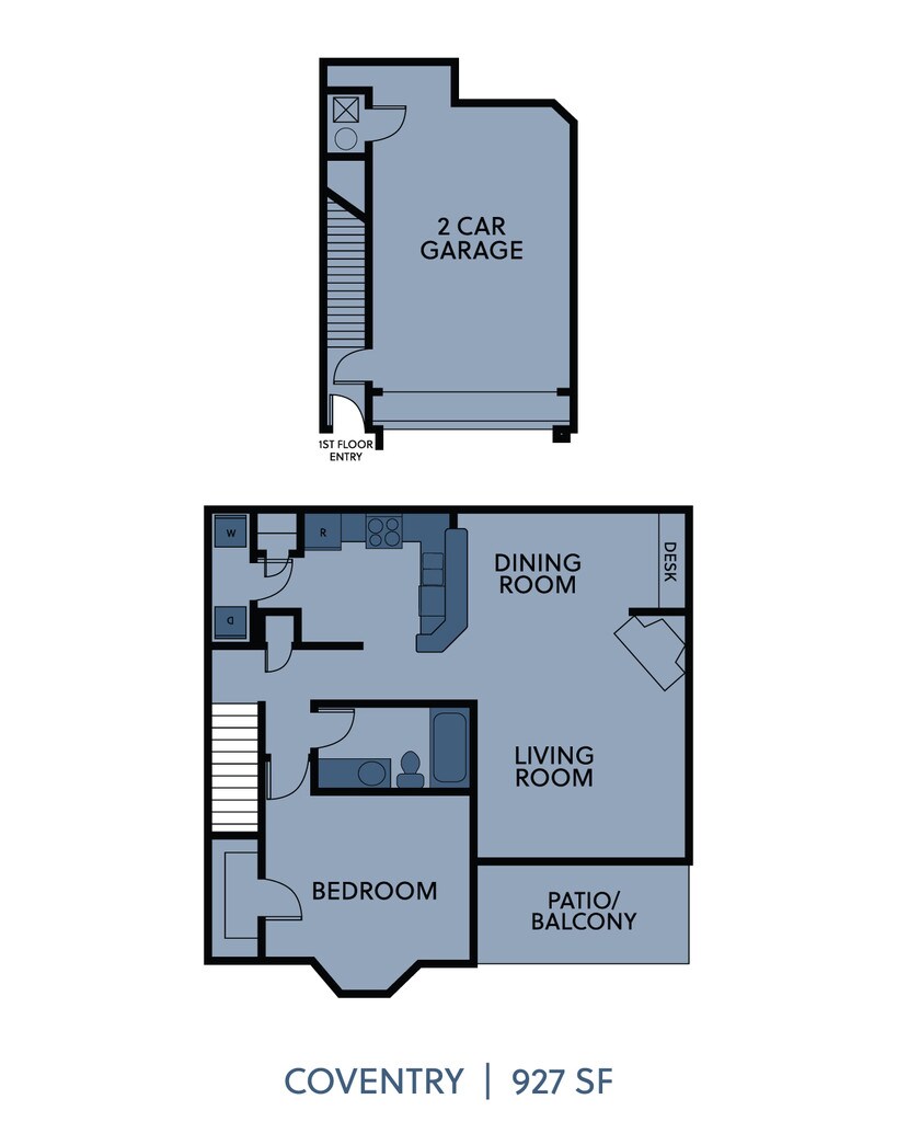 1 Dormitorio, 1 Baño, 817 pies²Galería del Modelo