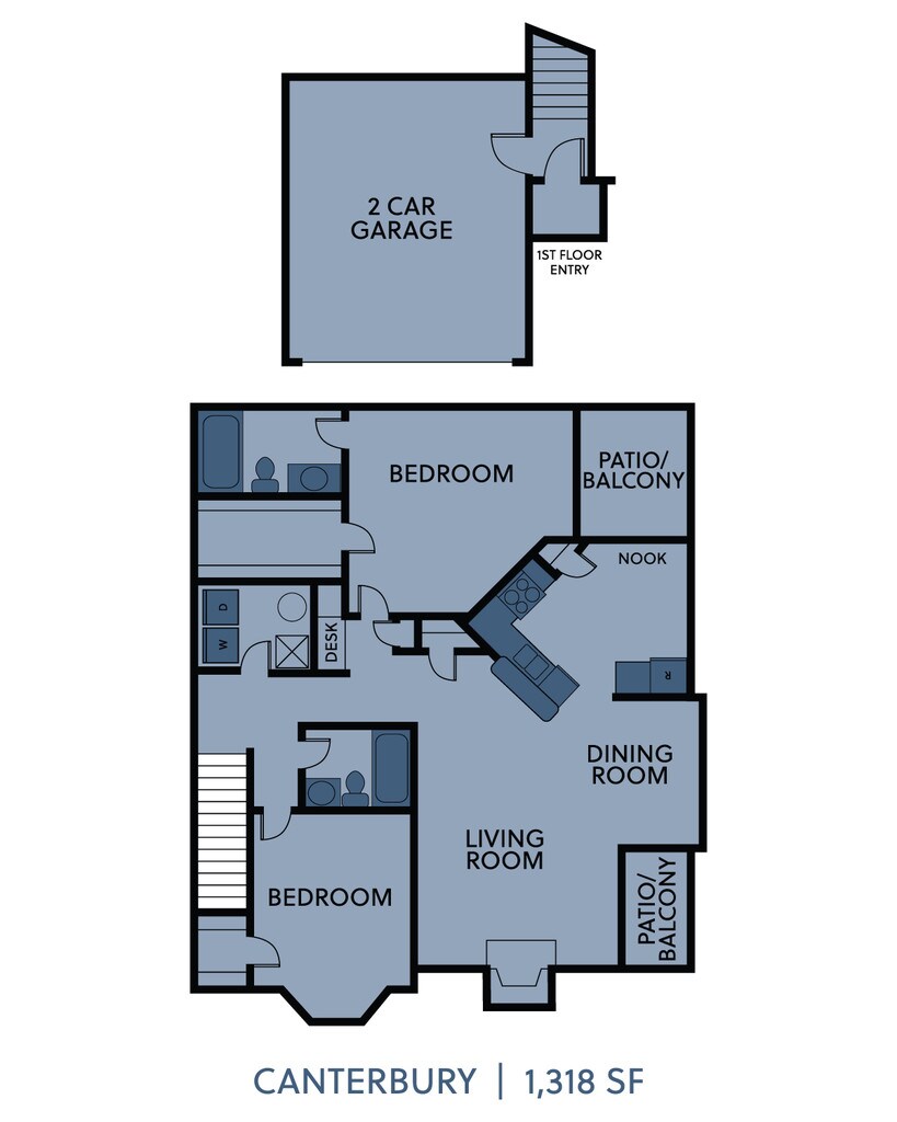 Modelo de apartamento: The Birch$1,2151 Dormitorio, 1 Baño, 774 sq ftNo Disponible![]()