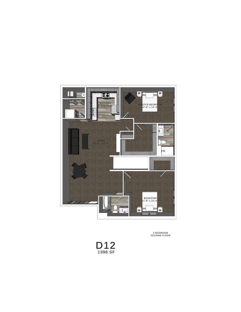 Modelo de apartamento: The Red Oak$1,2801 Dormitorio, 1 Baño, 861 sq ftDisponible December 7, 2025![]()