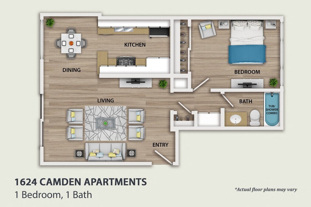 Modelo de apartamento: One Bed One Bath1 Dormitorio, 1 Baño, 660 sq ftDisponible April 5, 2026![]()