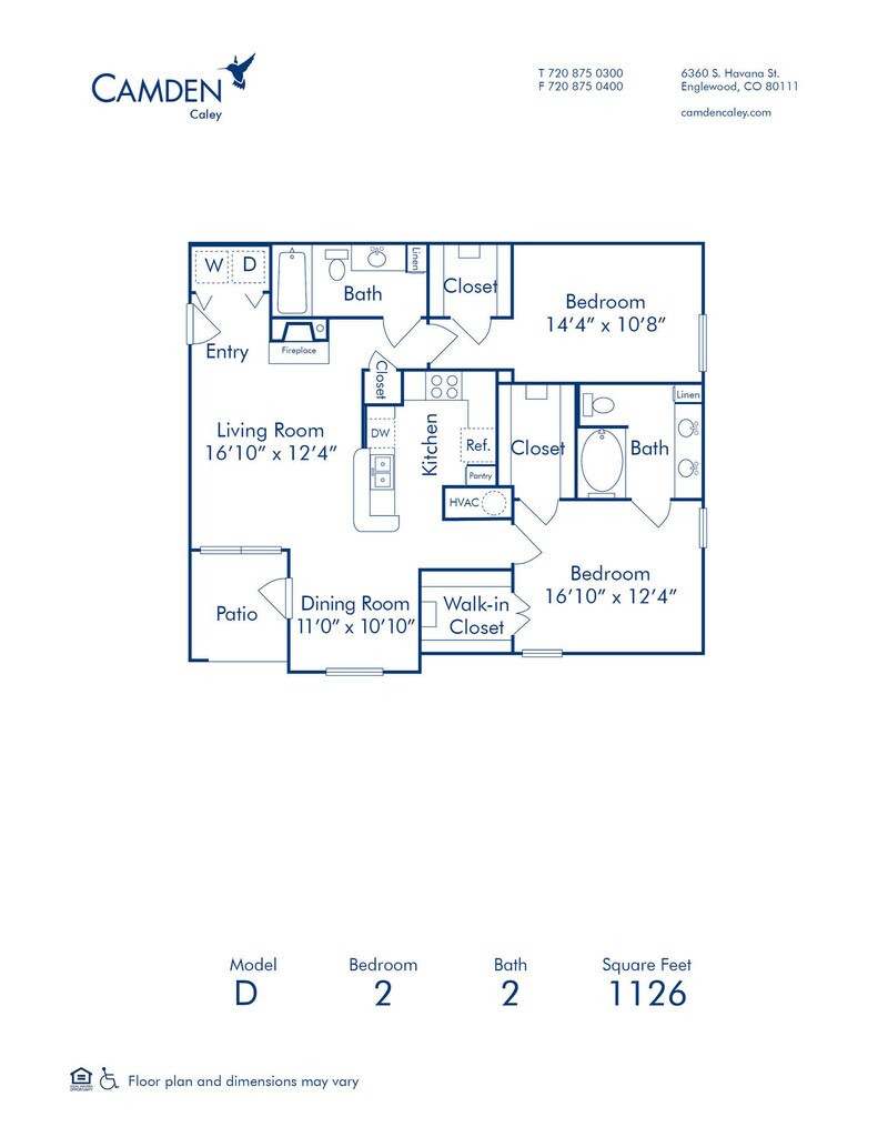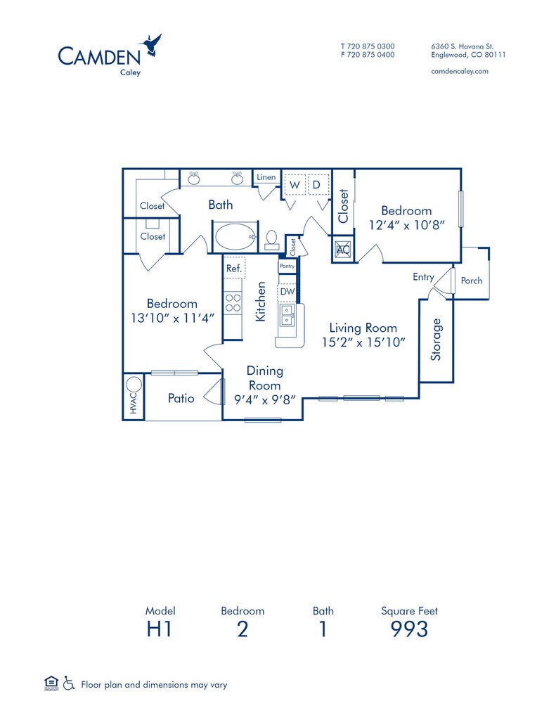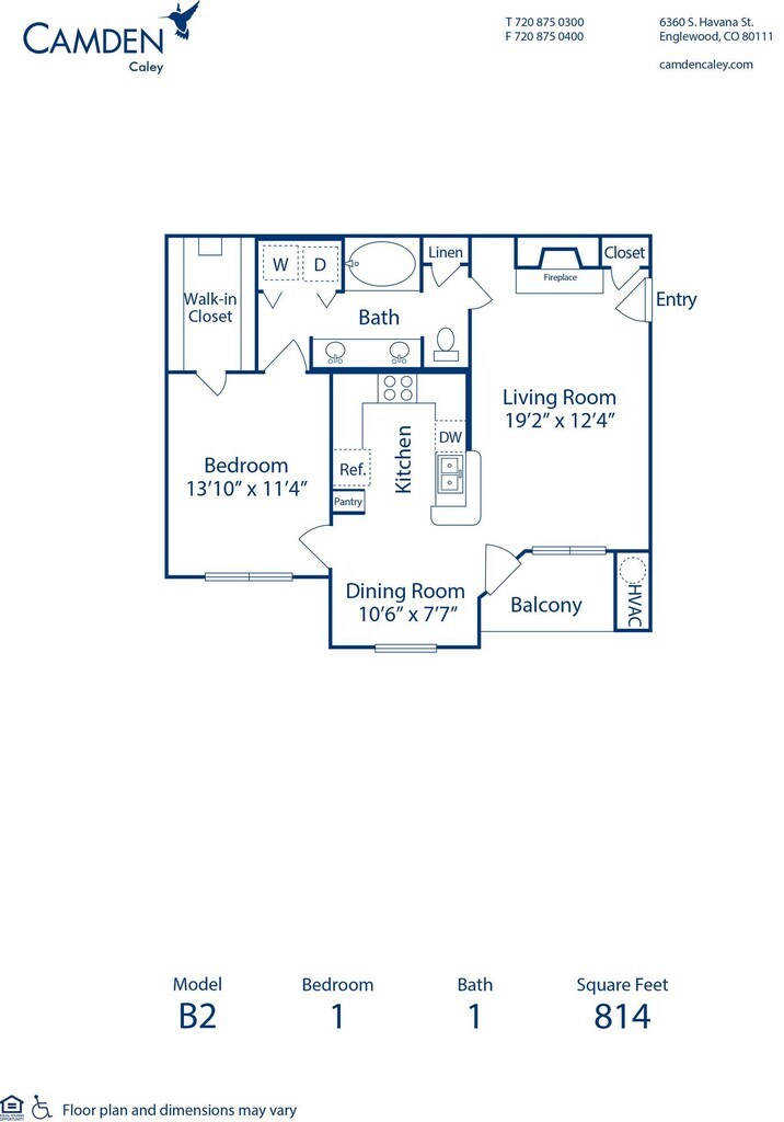 Ofrecemos recorridos autoguiados, en video en vivo y para miembros del equipo. ¡Llame 24 x 7 para programar! Según el mandato actual del condado de Arapahoe, todas las personas deben usar una máscara en el interior, independientemente del estado de vacunación. Disfruta de una vida de lujo estilo centro turístico cada día en Camden Caley. Dentro de nuestros apartamentos de una, dos y tres habitaciones encontrarás cocinas gourmet con electrodomésticos de acero inoxidable y encimeras de cuarzo, pisos estilo madera, balcones privados, vestidores espaciosos y mucho espacio para trabajar o estudiar desde casa. Nuestro complejo que admite mascotas cuenta con un parque para perros privado y servicios exclusivos tales como un gimnasio disponible las 24 horas, piscina de natación con bañera de hidromasaje, estaciones de parrillas al aire libre, Wi-Fi en las áreas comunes y servicio de recolección de residuos. Nuestra ubicación está en el prominente distrito escolar de Cherry Creek, está a una caminata de distancia de Centennial's Cherry Creek State Park y de populares tiendas, restaurantes y lugares de entretenimiento. Los residentes reciben un paquete de tecnología con ahorros de hasta un 48% en el comercio minorista. Este paquete para ahorrar dinero incluye Internet de alta velocidad de hasta 175 Mbps y más de 140 canales de video digital a través de Xfinity. ¡Usa la aplicación Xfinity Go en tu teléfono inteligente o tableta para acceder a tu video digital en cualquier lugar! ¡Ven a casa a Camden Caley hoy mismo! Ten en cuenta que toda la disponibilidad del plano de planta está sujeta a cambios. Llama hoy mismo para mayor información.