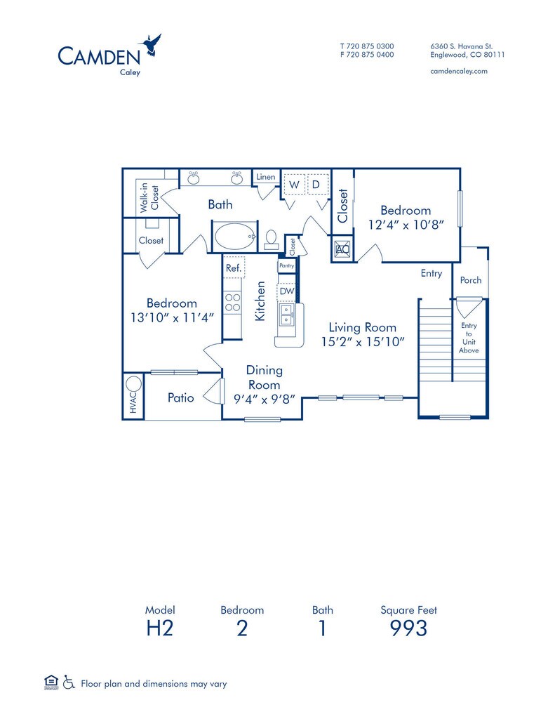 Modelo de apartamento: H2 Dormitorios, 1 Baño, 993 sq ftNo DisponibleH - Plano 1 H - Plano 2 Plano: F