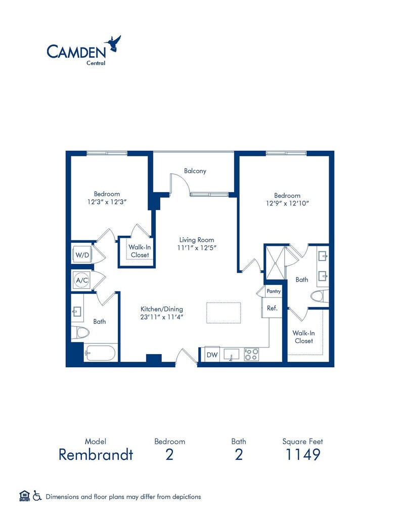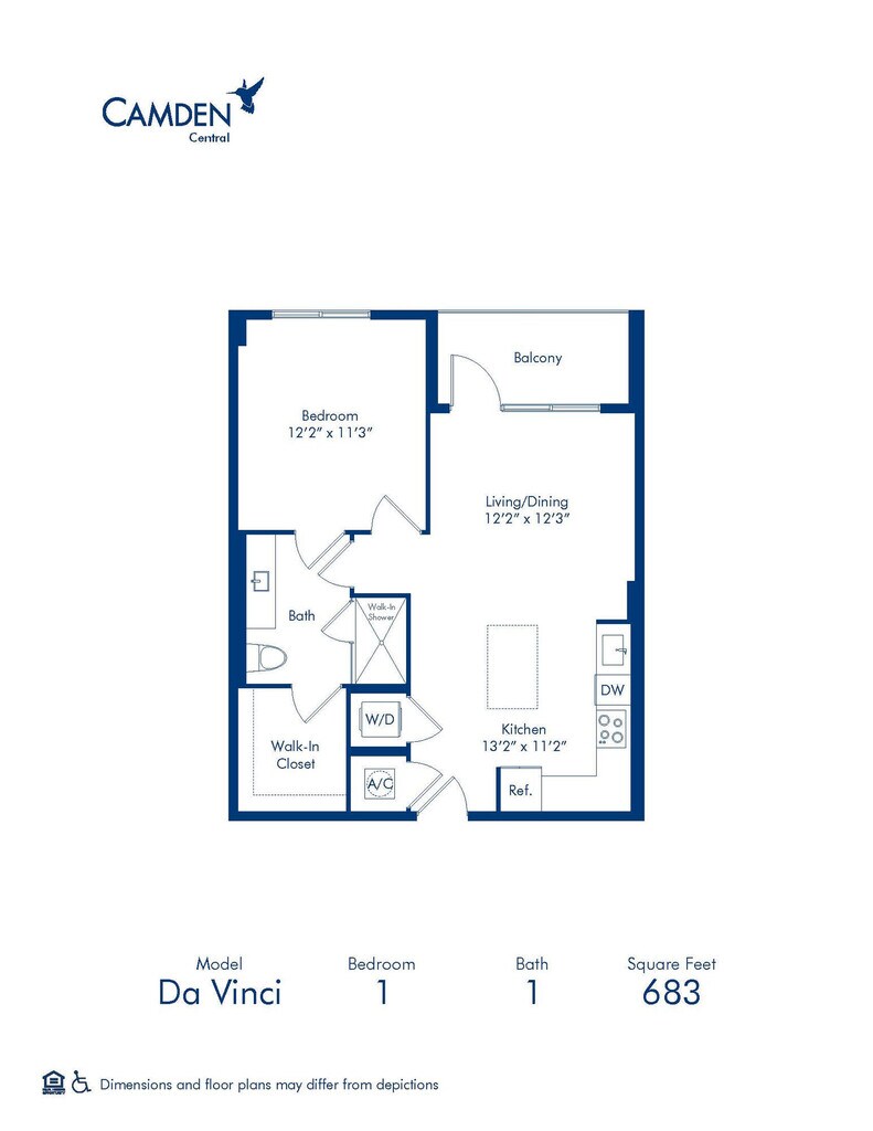 Modelo de apartamento: Da Vinci1 Dormitorio, 1 Baño, 683 sq ftNo Disponible![]()