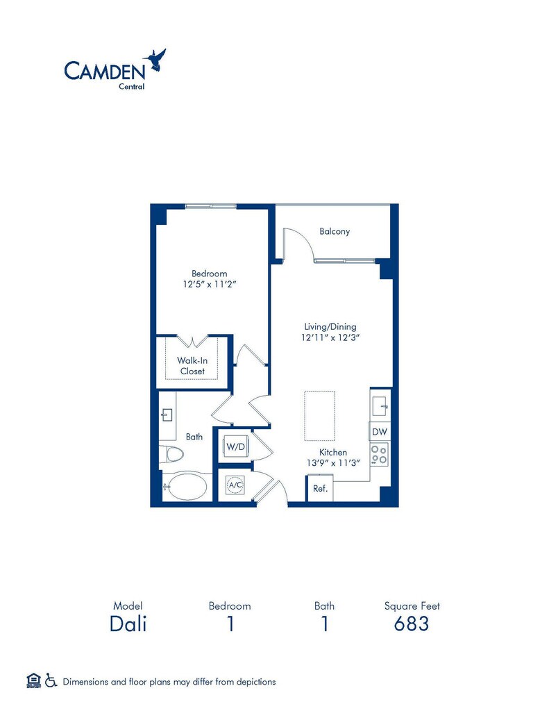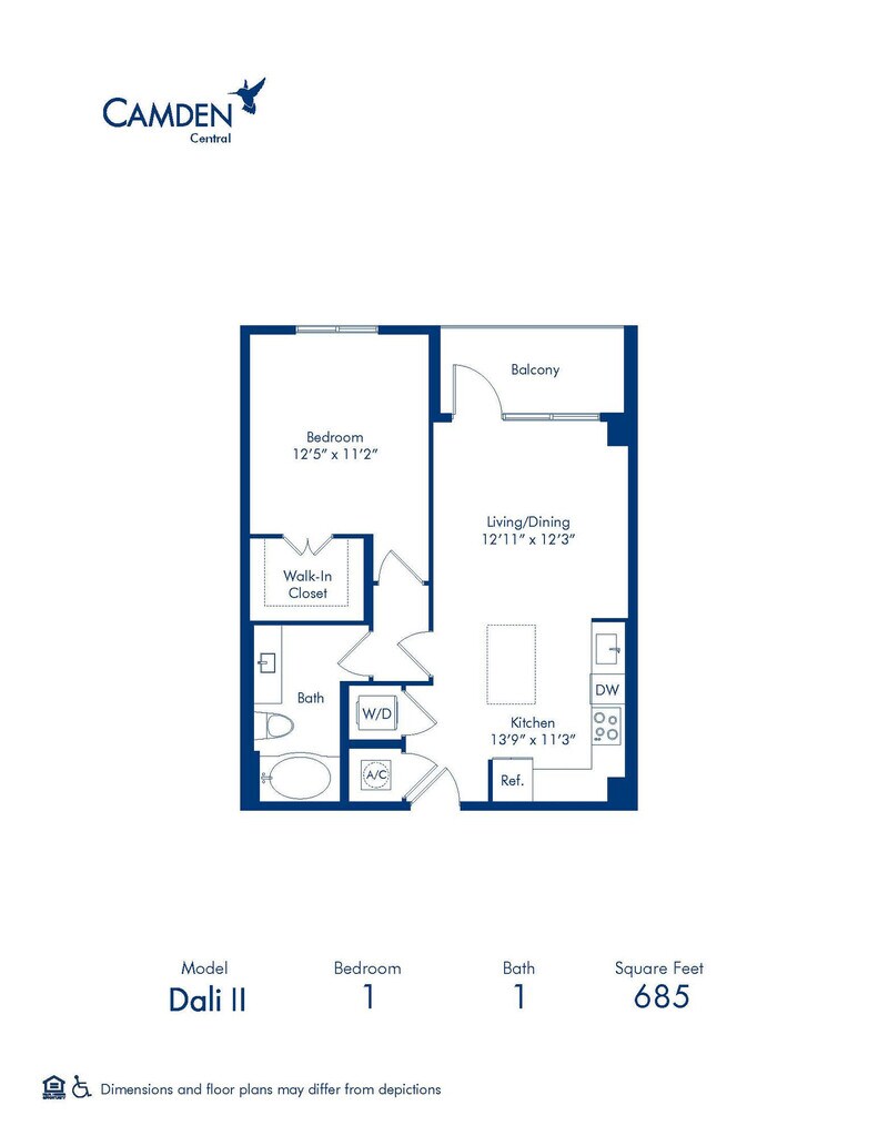 Modelo de apartamento: Dali1 Dormitorio, 1 Baño, 685 sq ftNo Disponible![]()