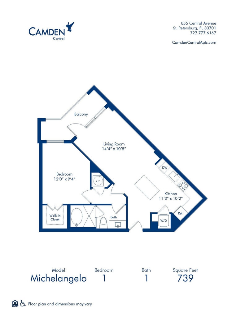 Modelo de apartamento: Michelangelo1 Dormitorio, 1 Baño, 739 sq ftNo Disponible![]()