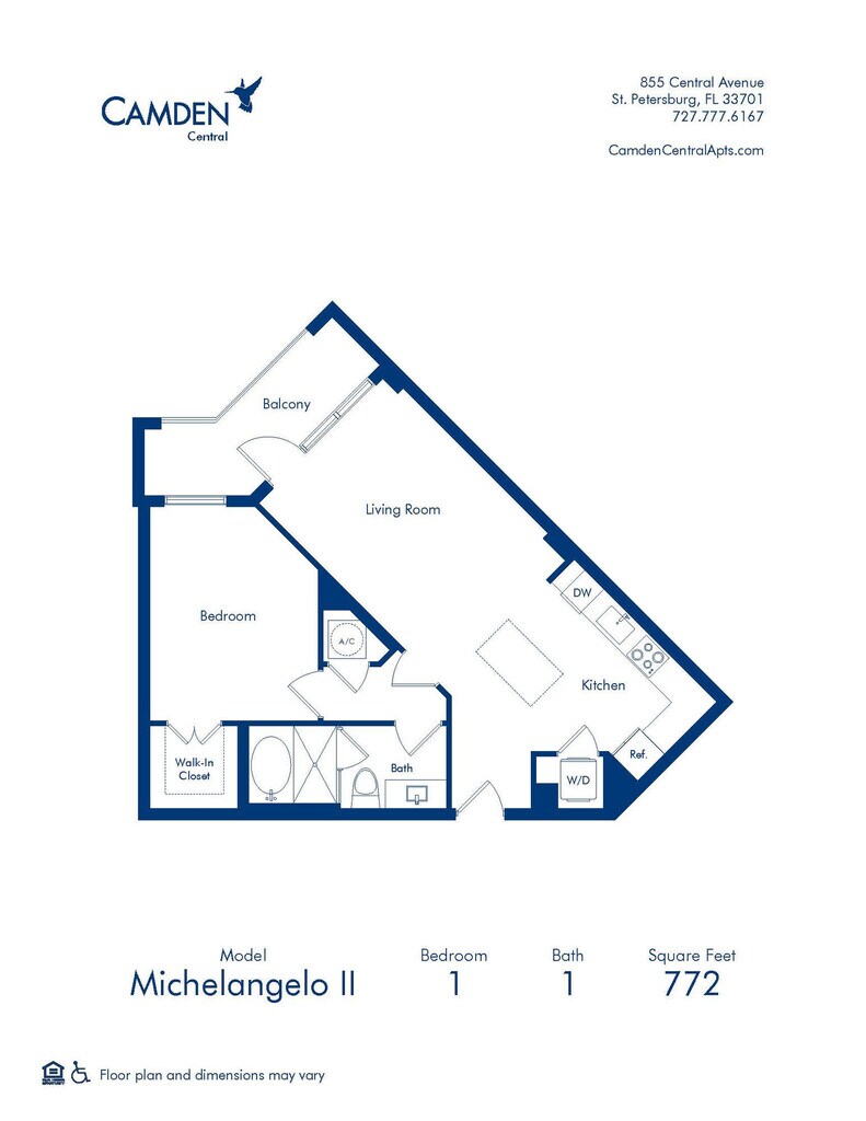 Modelo de apartamento: Michelangelo II1 Dormitorio, 1 Baño, 772 sq ftNo Disponible![]()