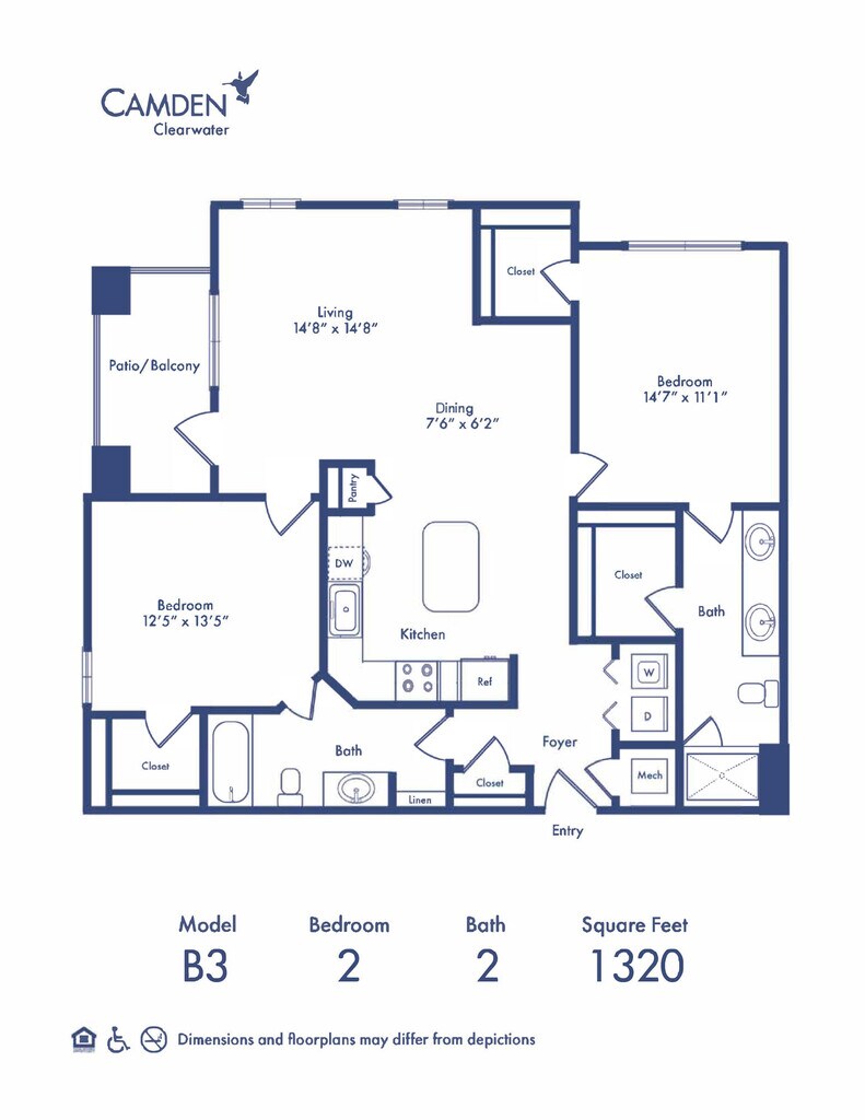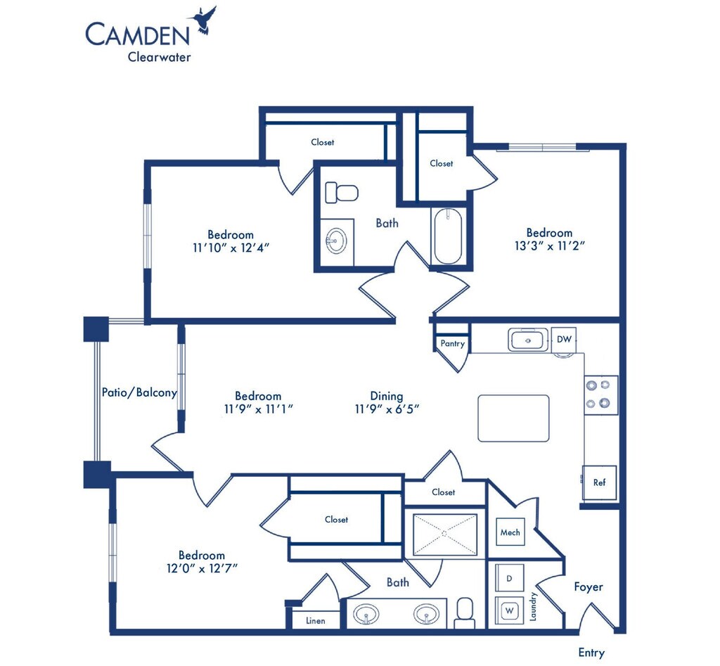 Camden Clearwater ofrece apartamentos de 1 a 3 Dormitorios desde $1,839 con 754–1,432 pies cuadrados. Aquí está el precio actual y la disponibilidad: