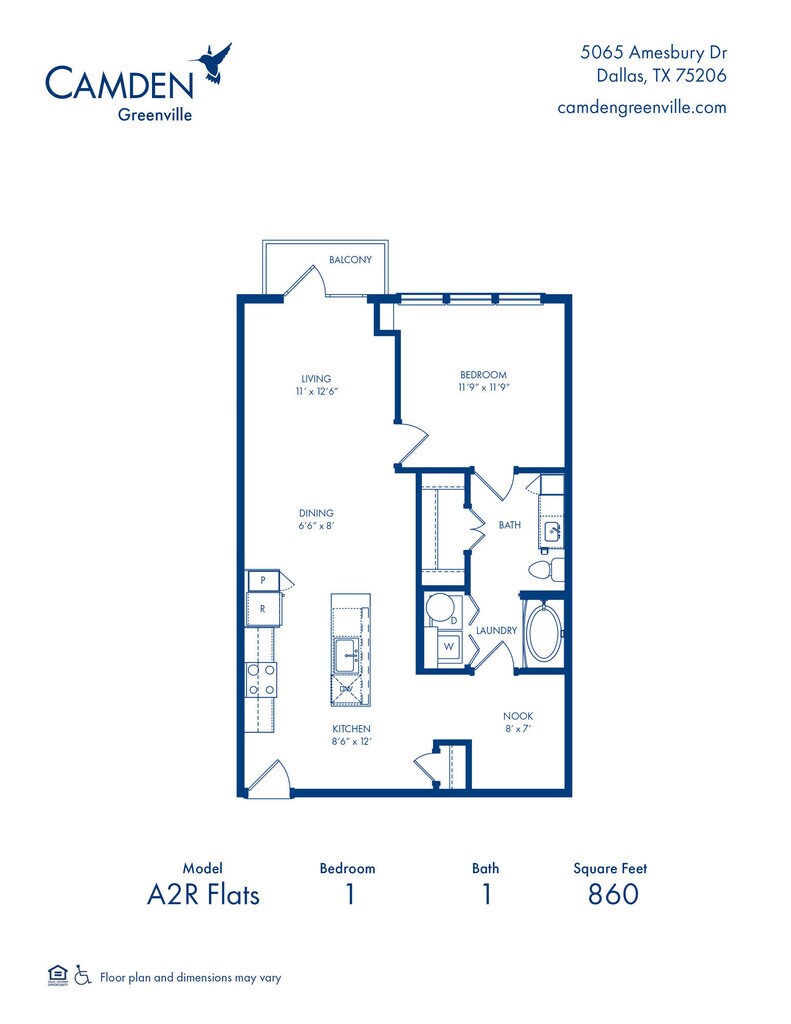 Modelo de apartamento: A2R Flats1 Dormitorio, 1 Baño, 860 sq ftNo Disponible![]()