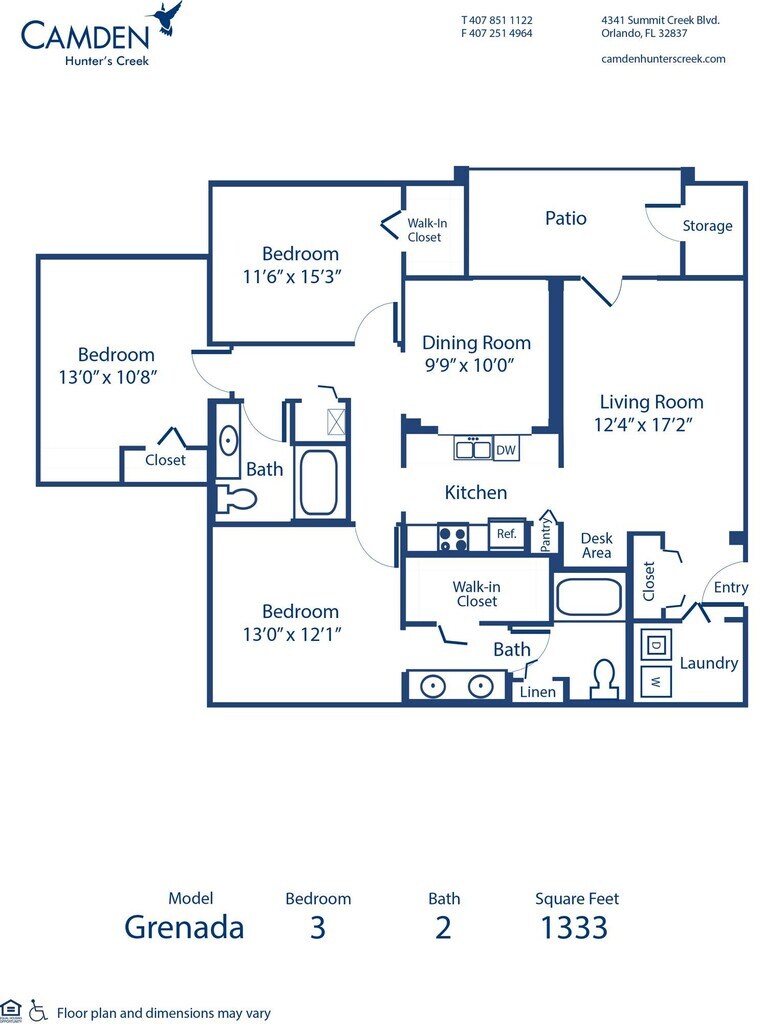 Modelo de apartamento: Grenada3 Dormitorios, 2 Baños, 1333 sq ftNo Disponible![]()