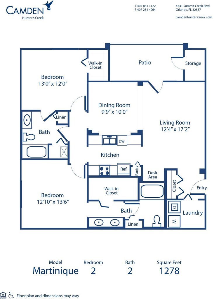 Modelo de apartamento: Martinique2 Dormitorios, 2 Baños, 1278 sq ftNo Disponible![]()