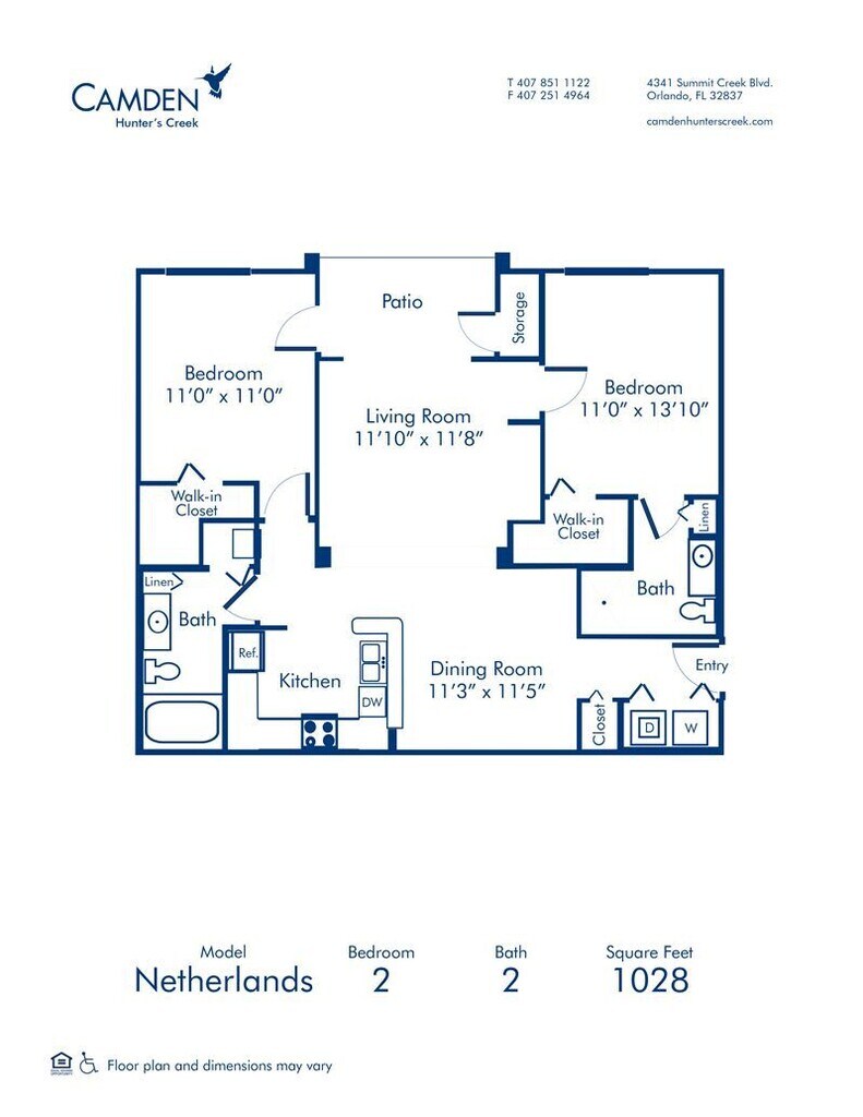 Modelo de apartamento: Netherlands2 Dormitorios, 2 Baños, 1028 sq ftNo Disponible![]()