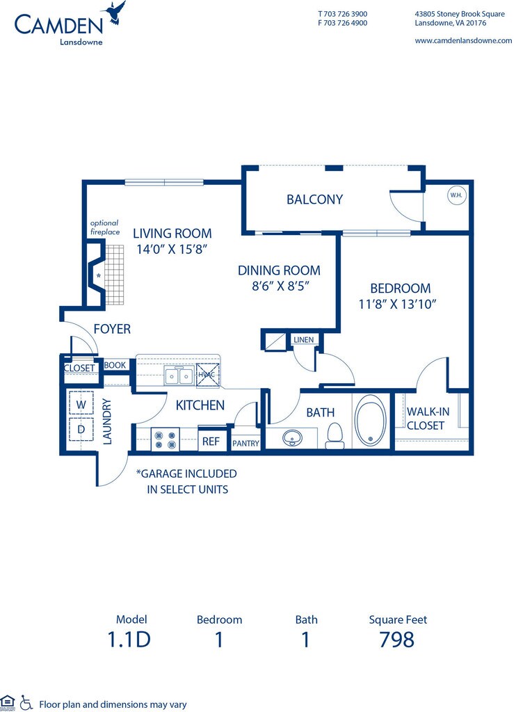 Modelo de apartamento: 1.1D1 Dormitorio, 1 Baño, 798 sq ftNo Disponible![]()