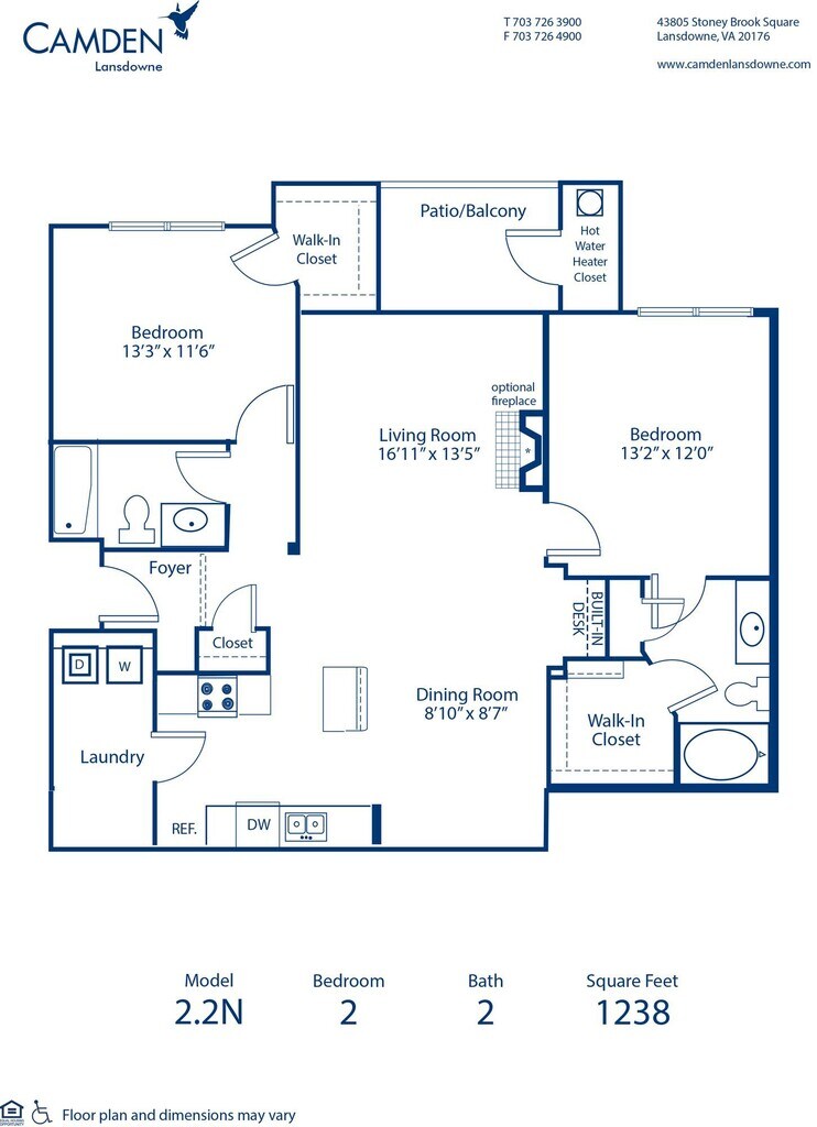 Modelo de apartamento: 2.2N2 Dormitorios, 2 Baños, 1238 sq ftNo Disponible![]()