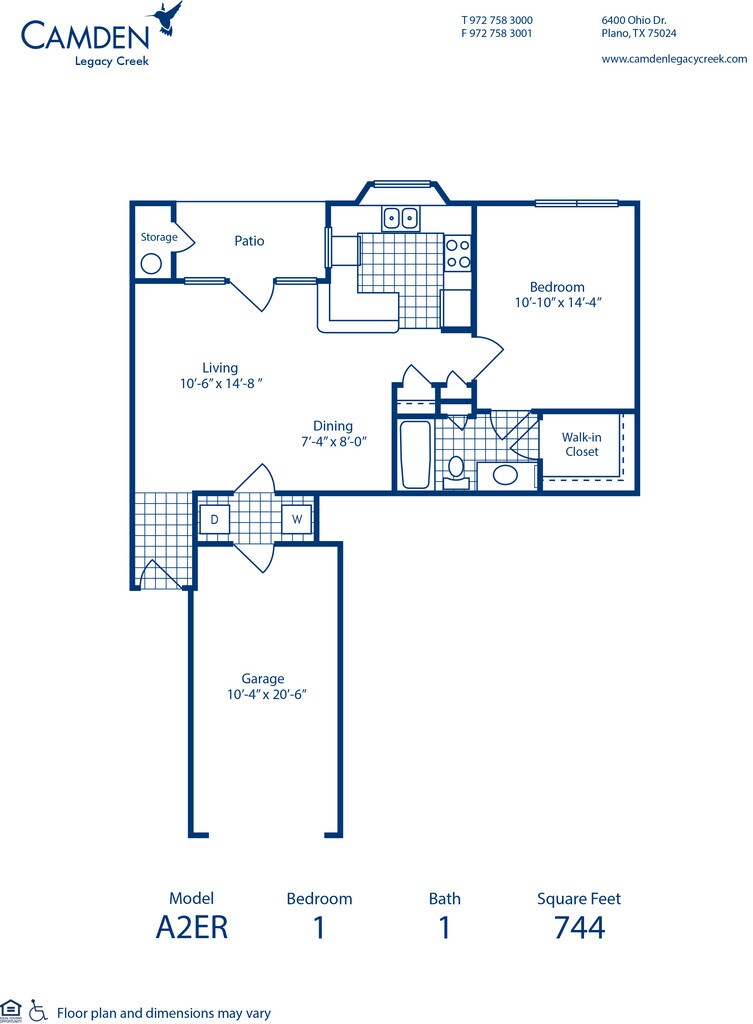 Modelo de apartamento: A2ER1 Dormitorio, 1 Baño, 744 sq ftNo Disponible![]()