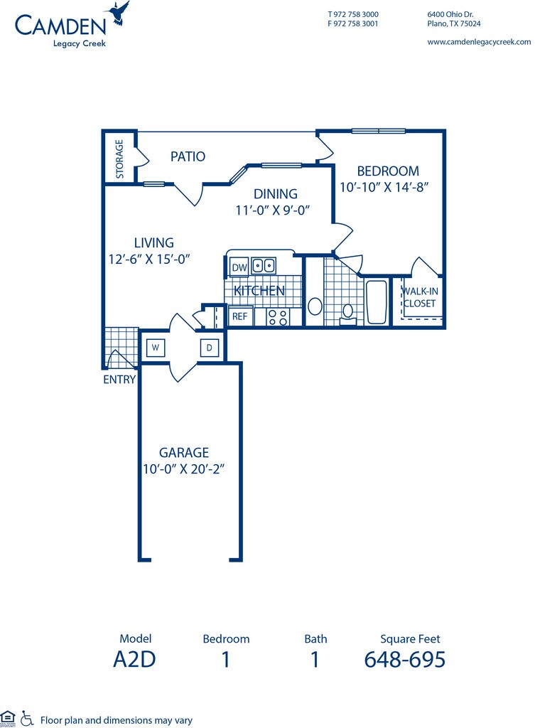 Modelo de apartamento: A2D1 Dormitorio, 1 Baño, 648 sq ftNo Disponible![]()