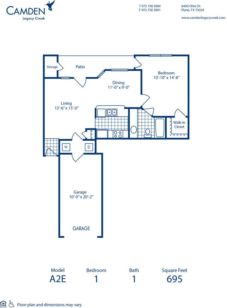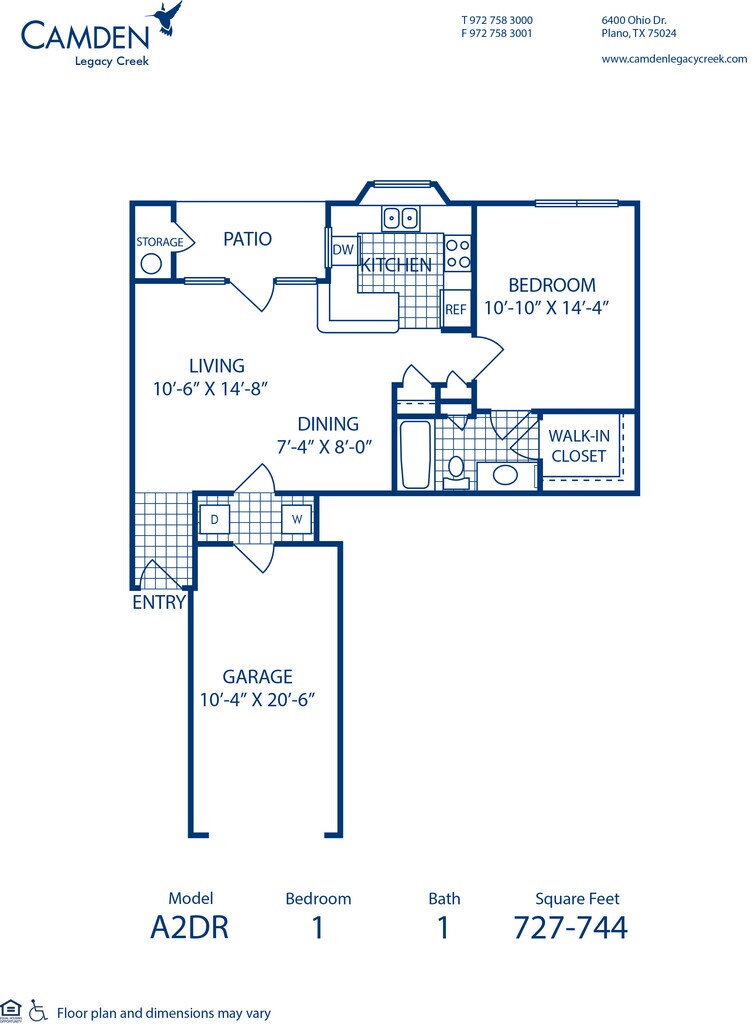 Modelo de apartamento: A2DR1 Dormitorio, 1 Baño, 736 sq ftNo Disponible![]()