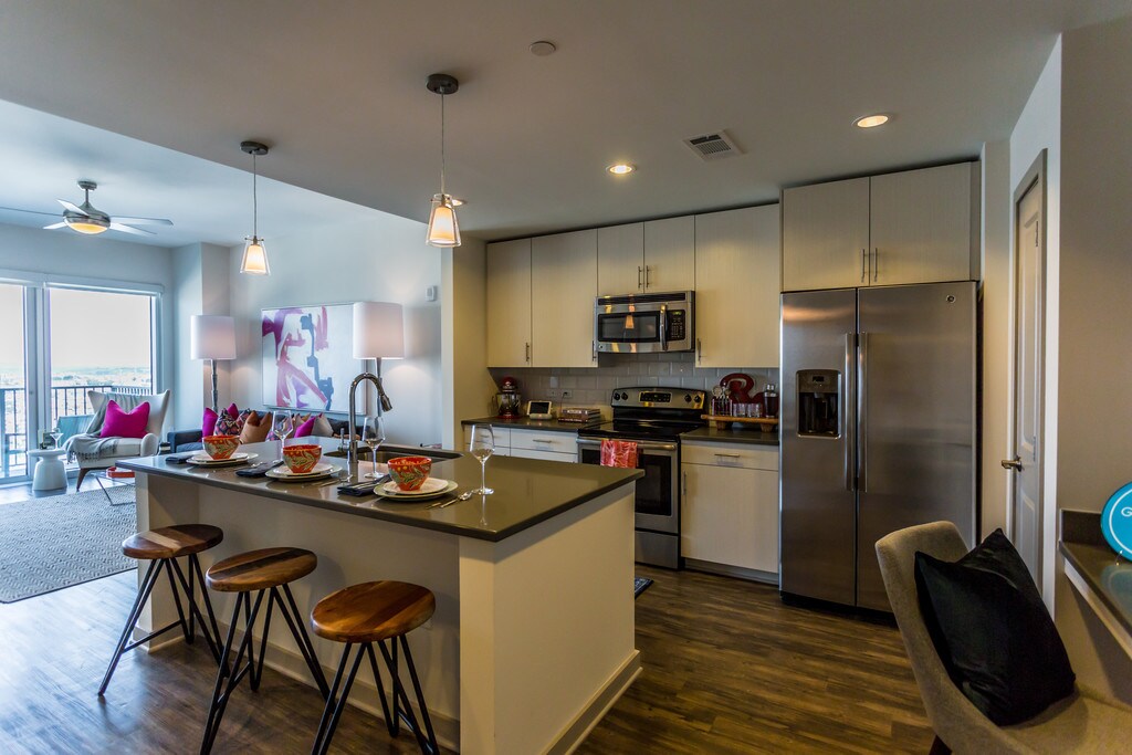 Ofrecemos opciones de recorridos con video en vivo, autoguiado y con miembros del equipo. Llámanos las 24 horas del día, todos los días para programar una cita. Camden Music Row cuenta con lujosos apartamentos tipo estudio, de una y dos habitaciones, y penthouses de lujo de una, dos y tres habitaciones en el corazón del centro de la ciudad de Nashville. A solo unos pasos de la mayoría de las populares tiendas del centro de la ciudad, restaurantes y lugares de entretenimiento, Camden Music Row te permite participar en todo lo que Nashville tiene para ofrecer. Convenientemente ubicado a la salida de la I-65, Camden Music Row está a una poca distancia en auto de los alrededores de ciudades como Brentwood de Nashville, Franklin y Mount Juliet. Elige entre dos acabados de interior de estilo moderno: encimeras de cuarzo color blanco con gabinetes de color negro y placa para salpicaduras de cerámico gris o encimeras de cuarzo color gris con gabinetes blancos y placa para salpicaduras de azulejos blancos. Relájate y deja que nosotros nos encarguemos de todas tus necesidades en Camden Music Row, con un conserje en el lugar las 24 horas, un gimnasio y un estudio de yoga disponible las 24 horas con los mejores equipos de entrenamiento cardio y de fuerza, que incluye bicicletas de spinning y clases de gimnasia a pedido, una azotea, una piscina de agua salada con vista a la ciudad de Nashville, y mucho más. ¡Ven a verlo por ti mismo y programa tu recorrido ahora! Los precios y la disponibilidad están sujetos a cambios. Llama para obtener detalles.