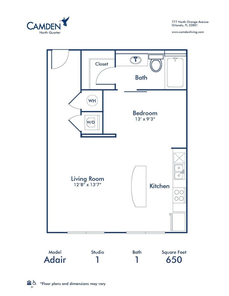Modelo de apartamento: AdairEstudio, 1 Baño, 650 sq ftNo Disponible![]()