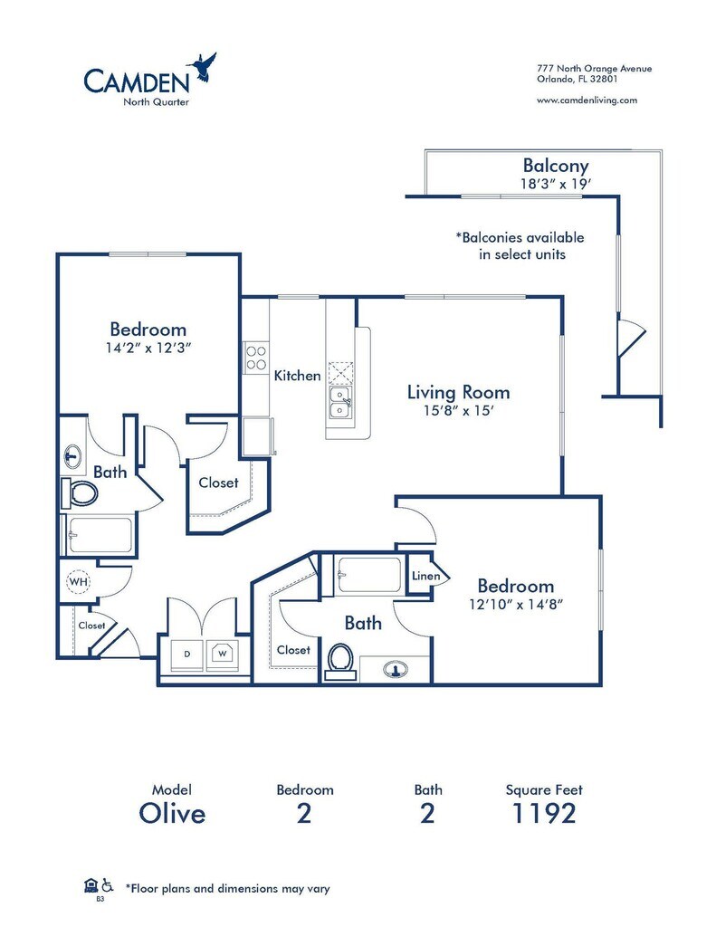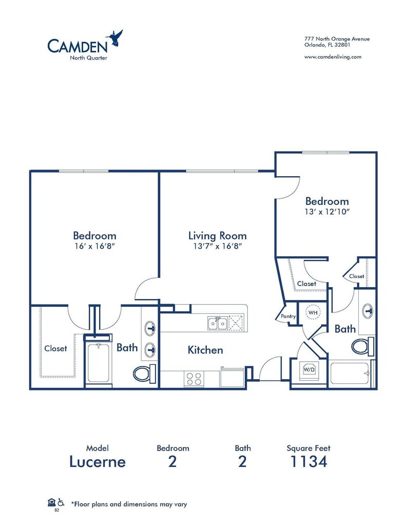 Modelo de apartamento: Lucerne2 Dormitorios, 2 Baños, 1134 sq ftNo Disponible![]()