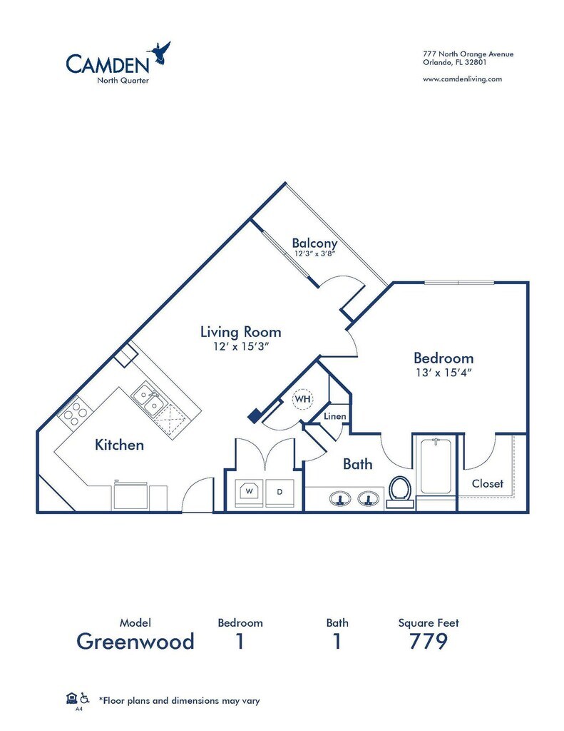 Modelo de apartamento: Greenwood1 Dormitorio, 1 Baño, 779 sq ftNo Disponible![]()