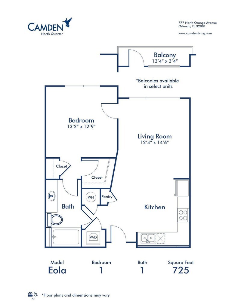 Modelo de apartamento: Eola1 Dormitorio, 1 Baño, 725 sq ftNo Disponible![]()