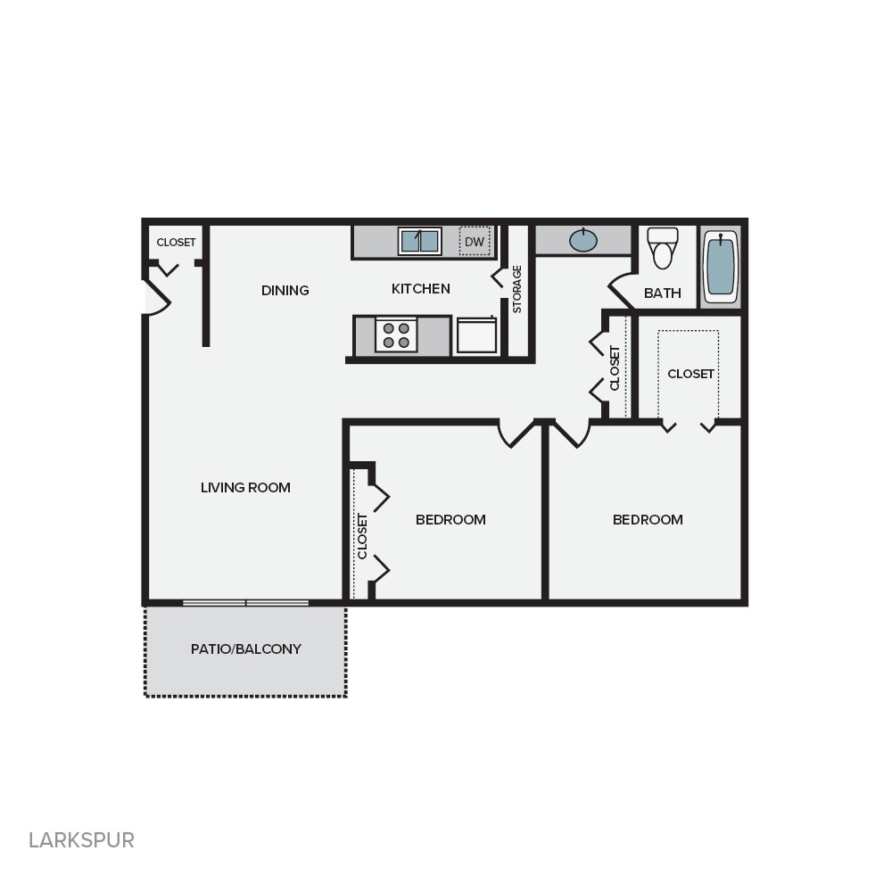 2 Dormitorios, 1 Baño, 828 pies²Disponible AhoraGalería del Modelo