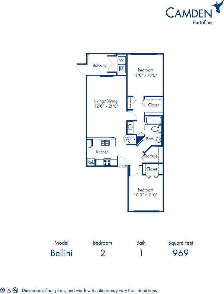 Modelo de apartamento: Bellini2 Dormitorios, 1 Baño, 969 sq ftNo Disponible![]()