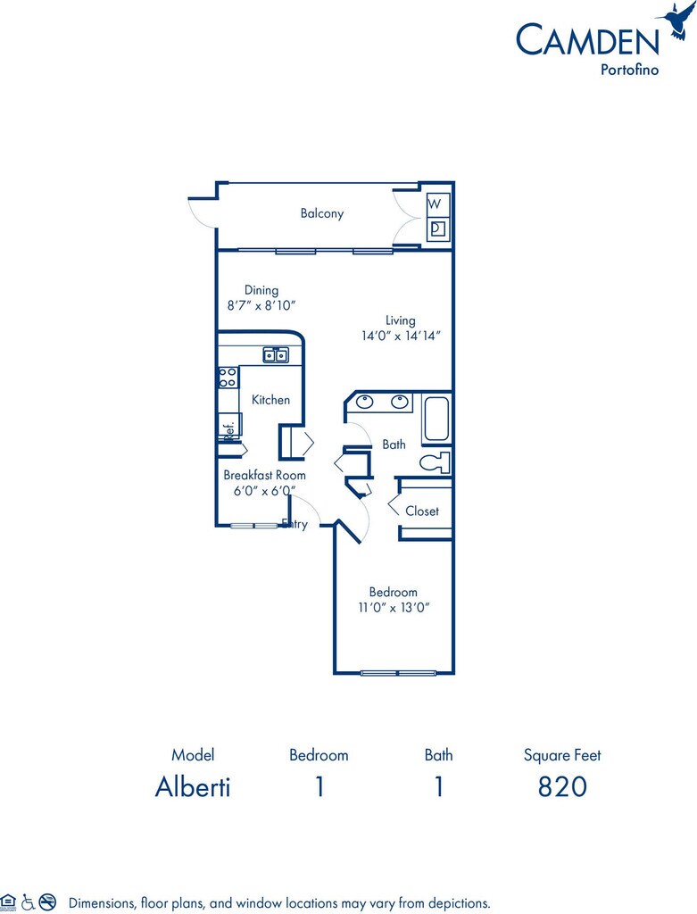 Modelo de apartamento: Alberti1 Dormitorio, 1 Baño, 820 sq ftNo Disponible![]()